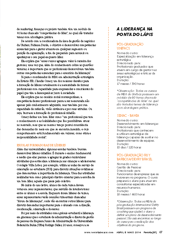Reportagens para Revista B+
